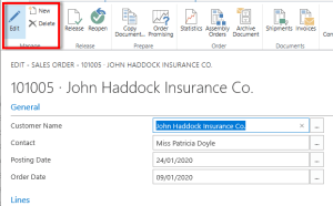 If you enter a value in the description of a sales or purchase document and the type is different from items or resources, the Number field is not populated automatically. |