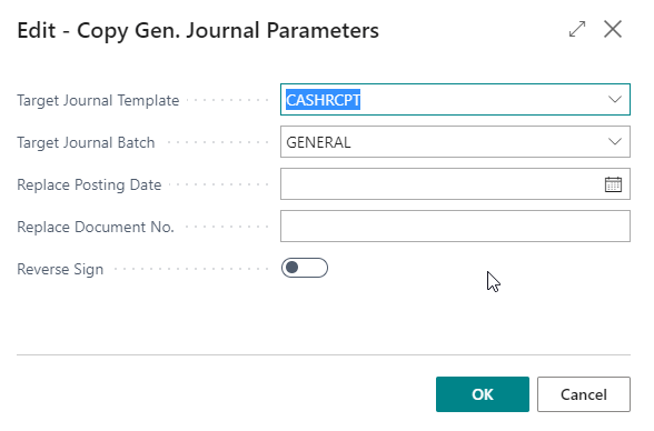 Copy Selected Lines to Journal :-This function to create a copy of a general journal line or a batch with opposite signs (a reversing journal), a different posting date or document number.