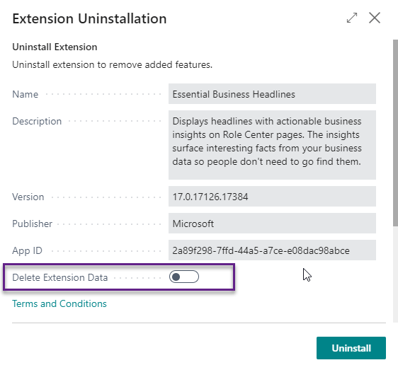 With the release of Business Central Wave 1 2020 new feature added to delete the extension data from production or sandbox. Prior to that we can uninstall the extension but data still there for the extension.
