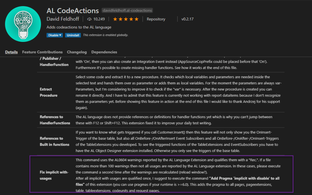 With XML comments it also enable intellisense in AL objects that you add in your code as a help to other developers who is going extend your code.