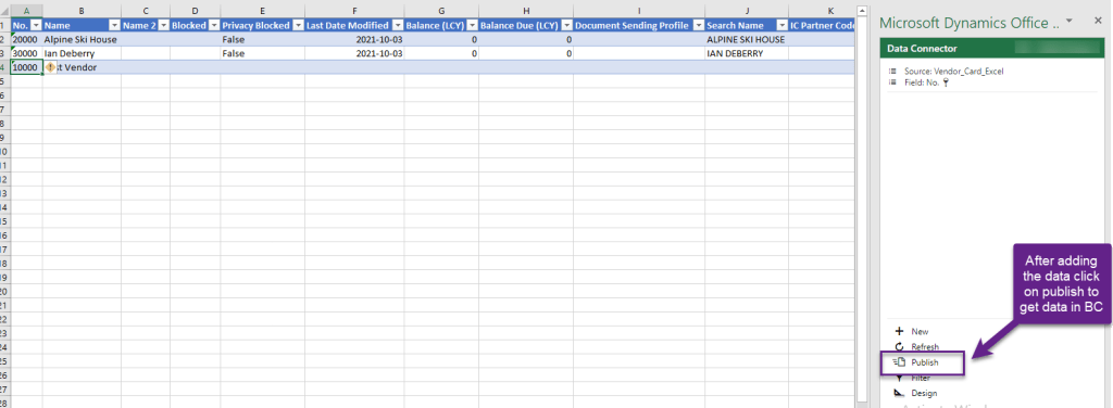 But what if data is enter in excel and publish directly to business central.