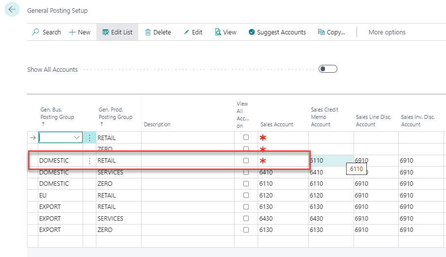 Removed the Sales Account from Posting Setup as below