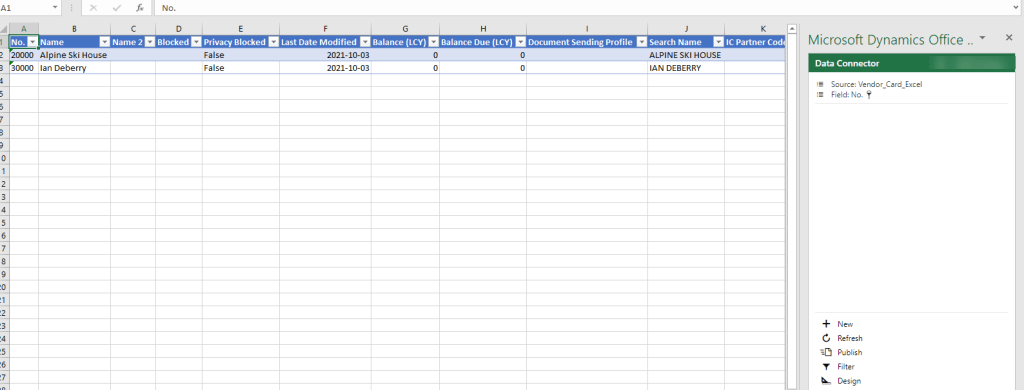 Once you click on publish then it will upload the data in business central as below.